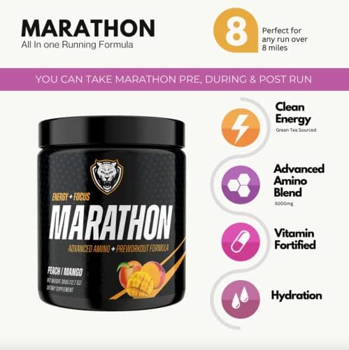 6AM Run Marathon – Pre Workout Powder for Distance Running & Essential Amino Energy – No Jitters, High Energy for Cardio & Stamina Formula – All Natural, Keto, Vegan