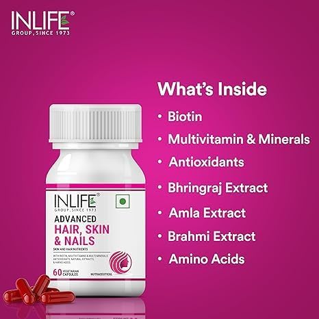 A unique combination of Biotin, Grape Seed Extract, L-Cysteine, DL-Methionine, Citrus Bioflavonoids & natural extracts of Bhringraja, Amalaki Dry & Brahmi with essential vitamins & minerals. Packed with the essentials to help promote healthy hair, nail and skin.