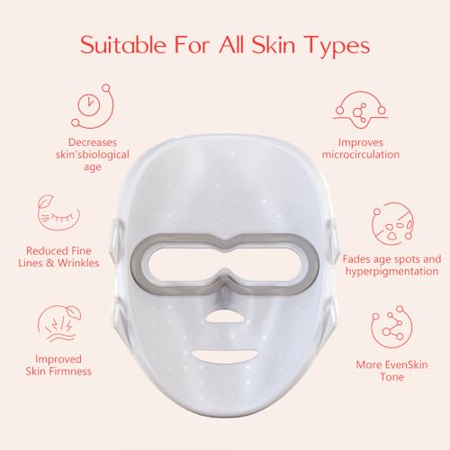 PHOTON THERAPY FOR SKIN PROBLEMS – This LED photon facemask is created specifically for skin problems. We chose the seven most advantageous wavelengths of color light to successfully treat your skin issues. LED photon beauty mask employs physical skin care approach that involves, so it will not create any irritation, stimulation, making it suitable for even the most sensitive skin types.