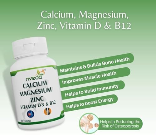 Calcium Supplement 1,000 mg with Vitamin D, Magnesium, Zinc & Vitamin B 12 For Men & Women/For Immunity, Bone & Joint Support -Pack of 2 120 Tablets