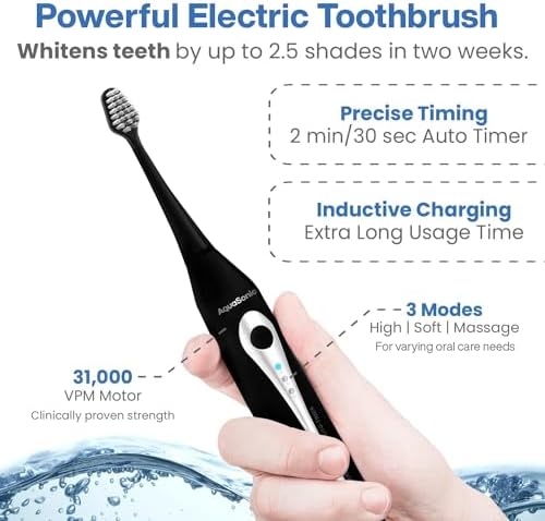Power Toothbrush – The toothbrush produces a whopping 31,000 Vibrations Per Minute with 3 different modes including normal, soft, massage. It also features a built-in 2-minute auto shut-off timer and 30 second interval timer to let you know to brush different areas of your mouth. Convenient inductive charging lets you place back in its dock to charge wirelessly.