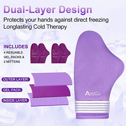 Dual-Layer Ice Gloves for Hands: Dual-layer system for comprehensive protection to hands during cryotherapy. The ice arthritis gloves have two pockets on each side to insert the gel ice pack, which ensures the soothing cold fully hits your entire hand, great help with neuropathy, hand injuries, tendinitis, carpal tunnel pain, wrist pain, inflammation & swelling from heavy-duty work or during pernancy.