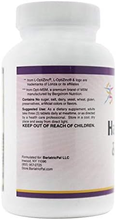 The real key to healthy skin, lustrous hair, and strong nails is building them from the inside out using key nutrients. Beauty from within formula is designed to help support healthy hair, skin, and nails by providing a wide range of essential nutrients including vitamins, minerals, and amino acids. The body incorporates these nutrients into a series of complex biochemical and physiological processes necessary for building healthy hair, skin, and nails. Despite these parts of the body being visible, their strength and quality are built from the inside out. The blood circulates through the body carrying the nutrients and co-factors needed to build, repair, and maintain hair, skin, and nails. BariatricPal Hair, Skin & Nails Formula features patented ingredients such as L-OptiZinc and OptiMSM, which has human clinical studies supporting its efficacy and safety.