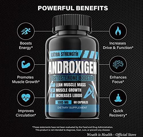 (Official) Androxigen Pills – Androxygen Capsules – Androxygen Supplements for Men’s Health and Wellness, Non-GMO, 1005mg, 60 Veg Pills – 2 Pack | Consult your health-care provider if you have a medical problem before you use this product. Dietary supplements are not intended to diagnose, treat, cure, or prevent any disease or health condition. – Wealth is Health Store