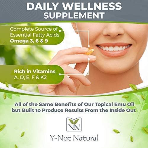 Y Not Natural’s Australian Emu Oil capsules natural ingredients are an excellent source of Omega 3, 6 and 9 essential fatty acids.