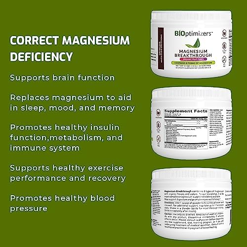 BiOptimizers Magnesium Breakthrough Drink Fruit Punch – 8 Forms of Magnesium: Glycinate, Malate, Citrate, and More – Natural Sleep and Brain Supplement – 5.4 oz (30 Servings)