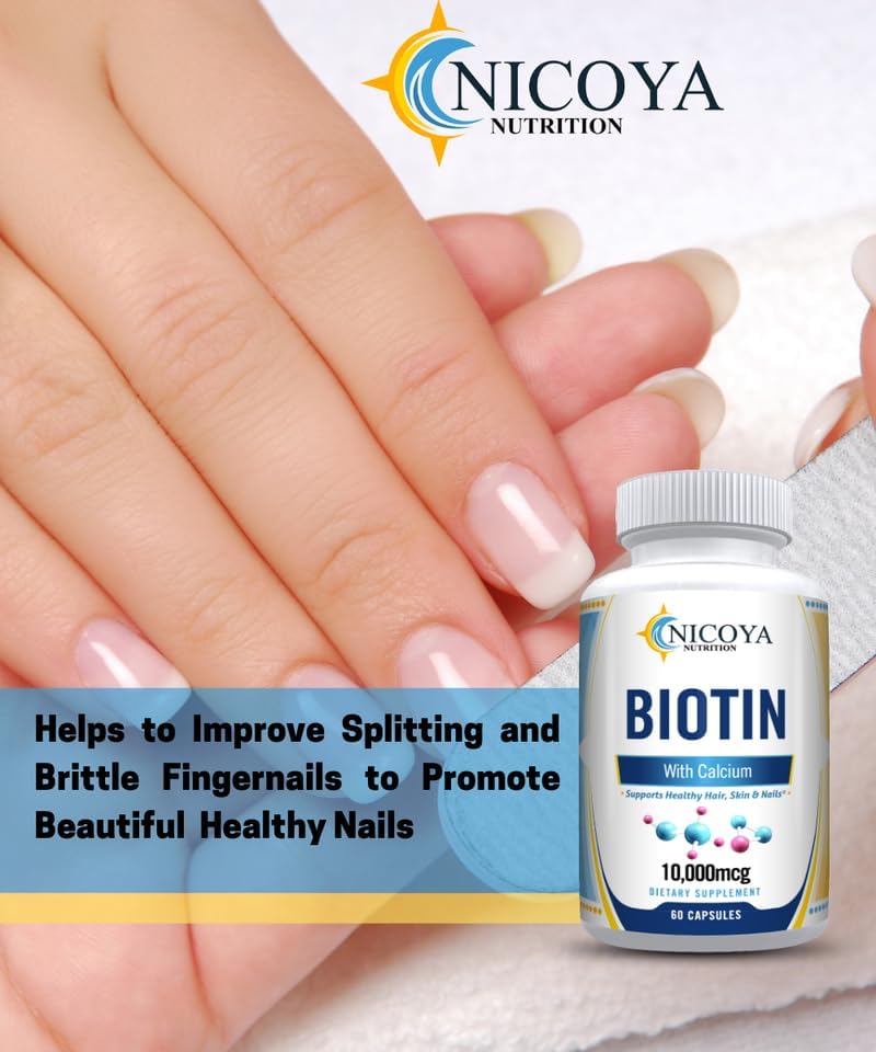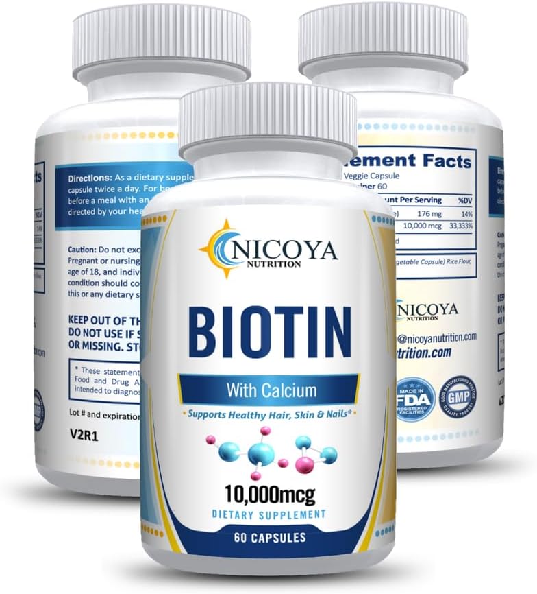BIOTIN Nail Skin Hair Growth Vitamins with Calcium Vitamin Supplement Non-GMO 10000mcg 60 Capsules