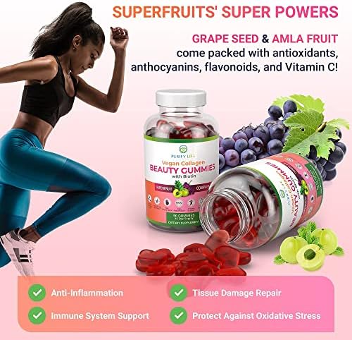 [Beauty Superfruits]: Grape Seed & Amla Fruit in our vegan collagen gummies for women, men, kids are loaded with antioxidants, phenolic acids, anthocyanins, flavonoids and vitamin c to boost your immune system, as well as protect against oxidative stress, tissue damage, and inflammation.