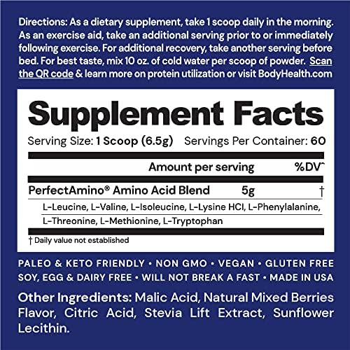 ⭐NEW LOOK, SAME GREAT PRODUCT. You may receive either product packaging during this transition. FORMULATED WITH 8 ESSENTIAL AMINO ACIDS: We included ALL 8 essential amino acids in our specially formulated PerfectAmino XP for 99% bio-availability. Your body gets maximum utilization, including BCAAs to ensure optimum nutrition & recovery.