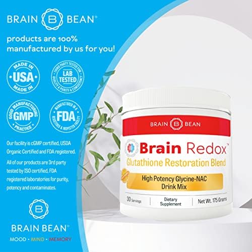 Brain Redox is a powerful, delicious blend of two clinically backed ingredients to restore and maintain your glutathione levels. Glutathione is our bodies most abundant antioxidant and is critical to maintain for optimal health. Unfortunately glutathione, it is depleted by aging, stress, infection, toxins and medications. Our brain and nervous system are greatly impacted by reduced levels of glutathione, putting one at increased risk for neurological decline. Brain Redox provides you with the perfect combination of 2500mg of both glycine and NAC to revive your glutathione levels to their youthful state, protecting your brain and body. Its invigorating natural orange flavor makes it easy to drink and enjoy! Brain Redox easily dissolves in water with no sugar or artificial sweeteners. Restore your redox potential to its optimal level with Brain Redox, your MOOD.MIND.MEMORY will thank you! Get Brain Redox now and start taking back control! Recommended Use Use 1 scoop in 12-16 oz of water daily for optimal results