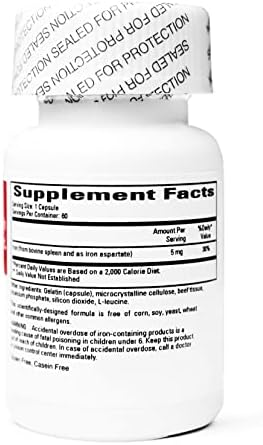 Easy to swallow capsules containing 5 mg ferritin from bovine spleen and as aspartate. Cardiovasscular Research Ltd is located in California USA