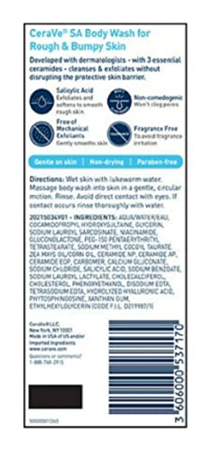 If you have rough and bumpy skin that is too sensitive to use just any skin care product, then this bundle is definitely for you. This is a CeraVe Skin Care bundle made exclusively for people that struggle with rough and bumpy skin, so you will get a SA Body Wash (10 fl oz) and SA Moisturizing Lotion (8 fl oz). 1 of each. This product contains three essential ceramides that helps restore and maintain a healthy protective skin barrier. Both of the products in this bundle contain Salicylic Acid.