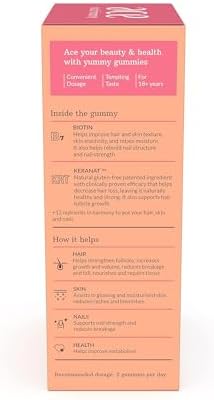 Gummies for Hair Growth, Glowing Skin & Strong Nails with Keranat| Balanced Beauty Biotin Hair Gummies for Women & Men with Zinc, Folic Acid and Multivitamin, Sugar Free – Trial Pack (5 Gummies)