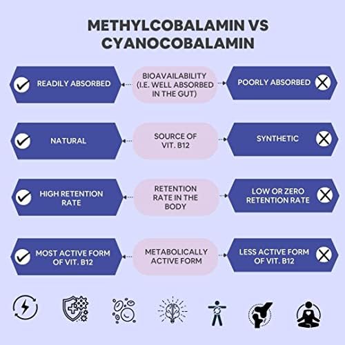 FASTER & BETTER RETENTION IN THE BODY TO OVERCOME B12 DEFICIENCY: Research says that Methylcobalamin 500 mcg tablets form of Vitamin B 12 Tablet is far better retained in the body than B12 Cyanocobalamin form. This helps you overcome your B12 deficiency faster and for longer periods of time.