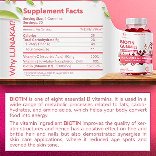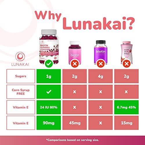 Healthier Hair Skin and Nails – Having great looking hair, skin & nails is really about what you put into your body not only on it. Lunakai’s Biotin gummies help to address any internal vitamin deficiency and help men and women to have a more glowing skin, stronger nails and longer, thicker hair