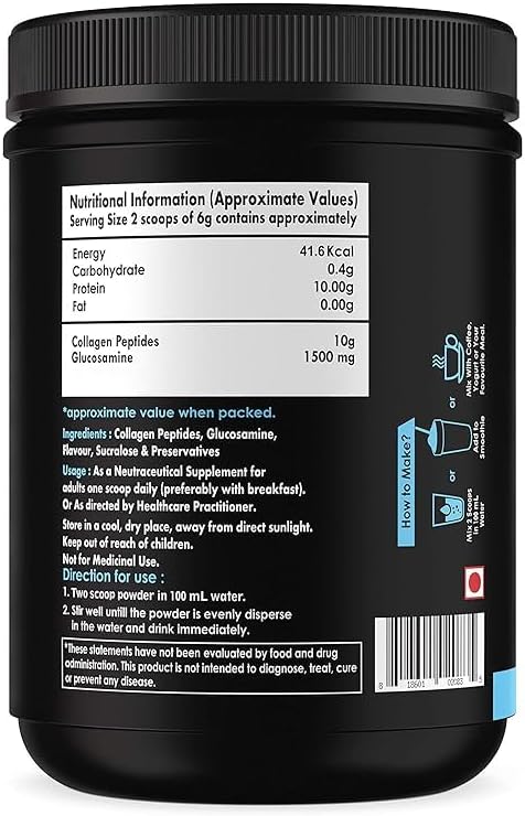 Quick and Powerful Serving: Each collagen serving contains the goodness of vitamin B12 for RBC production and glucosamine for anti-inflammatory properties.