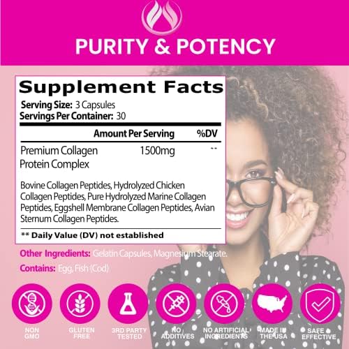 Collagen Pills – Beautify Multi Collagen Complex Capsules Type I, II, III, V, X | Extra Strength Hydrolyzed Collagen Peptides Supplements. Hair Skin Nails Vitamins, Joint Support, Non-GMO (2)