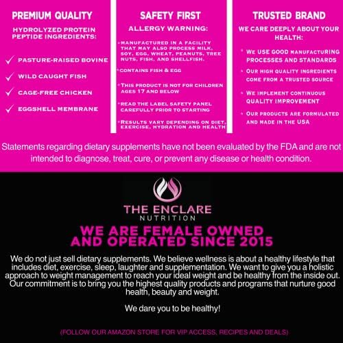 ✅ WE CARE ABOUT YOUR HEALTH AND SUCCESS SO FEEL SAFE & SECURE WITH OUR NATURAL – Collagen Supplement For Men & Women MADE IN THE USA With Highest Quality Standards, In A Facility That Follows Strict Good Manufacturing Practices (GMP) & Are 3rd Party Tested. Enclare Collagen Peptides Capsules Contain No Fillers, Additives, Gluten, Dairy, Peanut, Soy, Wheat, Yeast, Or Preservatives. Join Our 90 Days Challenge & See The Difference In 7 Days. Not Happy? Contact Enclare Directly.