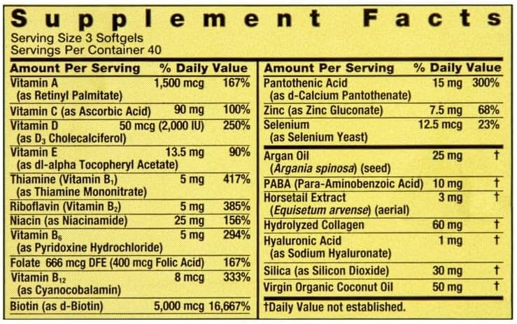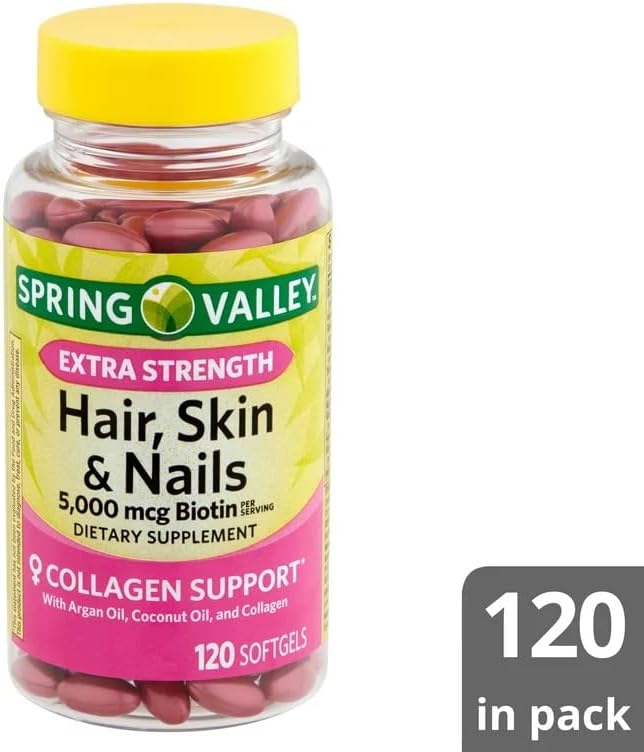 Convergence Extra Strength Biotin Hair, Skin & Nails Dietary Supplement, 5,000 mcg are dietary supplements that promote collagen support. Each serving provides 5000 micrograms of biotin, as well as 14 key vitamins and minerals, in addition to argan oil, coconut oil, and collagen. The suggested adult dosage is three softgels daily, preferably with a meal. You can rest assured that Convergence Extra Strength Biotin Hair, Skin & Nails Dietary Supplement, 5,000 mcg are produced with strict quality guidelines and are backed by our quality guarantee.