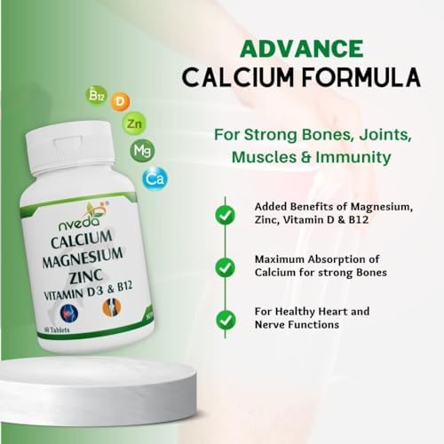 Calcium Supplement 1,000 mg with Vitamin D, Magnesium, Zinc & Vitamin B 12 For Men & Women/For Immunity, Bone & Joint Support -Pack of 2 120 Tablets