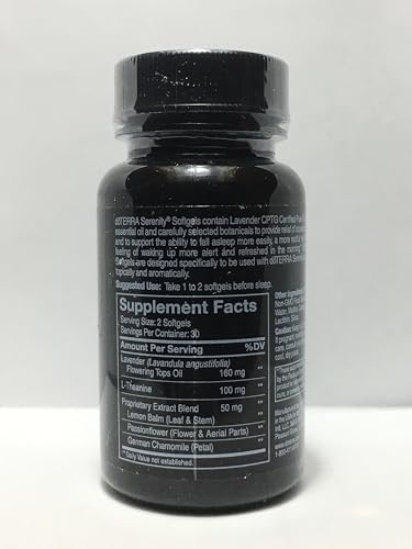 doTERRA Serenity Restful Complex combines the well-researched, relaxing benefits of Lavender essential oil and L-Theanine along with lemon balm, passionflower, and chamomile.