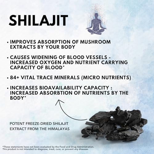 SHILAJIT :- Increases NO (nitric oxide) levels : causes widening of blood vessels (vasodilation) for improved bloodflow – oxygen and nutrient carrying capacity; 84 + vital trace minerals (micronutrients); Improves bioavailability capacity : Higher absorption of nutrients by the body
