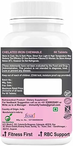 Innovative iron supplement that is a chewable Tablet SUPPORTS HIGH HEMOGLOBIN LEVEL SUPPORTS STRONG IMMUNE SYSTEM SUPPORTS INCREASE IN OXYGEN SUPPLY IN THE BODY REDUCES EXCESSIVE HAIR FALL Increases hemoglobin levels. Increases energy levels. Supports immunity. Improves mental performance. Improves athletic performance. Supports a healthy pregnancy. Helps in Anemia Iron is an essential element for blood production. It is found in the red blood cells and in muscle cells called myoglobin. Hemoglobin is essential for transferring oxygen in your blood from the lungs to the tissues. Steady iron levels are important for cognitive functions too Good health Strong Bones HIGH ABSORPTION THAT IS SOFT ON STOMACH Brain function SUGAR FREE Feeling more energetic. Improved emotional state. Fewer mood swings. less lethargicity TALC FREE FFS technique ensure talc free preperations Talc free preperation are better in absorption and easily digistable PRESERVATIVES FREE complete mental peace as our preperations are totally peservatives free GELATIN FREE Non sticky formulation to teeth and gums.