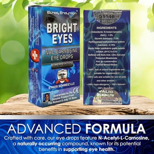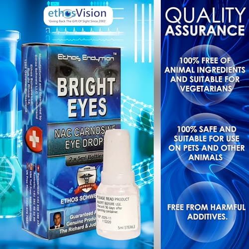 For 20 years, Ethos Bright Eyes has been a name synonymous with trust and excellence in the realm of eye care. We are proud to continue to offer our original NAC Carnosine Eye Drops, a testament to our commitment to your vision. Ethos Bright Eyes NAC Carnosine Eye Drops have achieved remarkable results, and this isn’t just a claim – it’s a fact. Featured on National UK Television, three patients experienced astonishing improvements, and we are here to offer you the same potential benefits. With a holistic approach to eye support, Ethos Vision eye drops are gentle and easy to use, thanks to the user-friendly dropper. We believe in providing you with a product that has stood the test of time, offering comprehensive support for your eye health and comfort. Just a few drops, and you’re on your way to nurturing your precious eyesight. Rest easy knowing that our eye drops are manufactured in the USA with stringent quality standards, ensuring they are safe and free from harmful additives. Whether you’re looking to enhance your visual comfort or simply want to take proactive steps towards maintaining your eye health, Ethos Vision Bright Eyes NAC Carnosine Eye Drops are a versatile solution suitable for all adults. Elevate your eye care routine with a product that puts your vision first.
