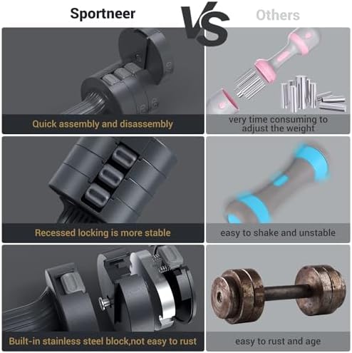 【Adjust In A Sec】Sportneer dumbbells adjustable weight innovatively constructed itself with quick multi-weight adjustment that allows you to increase/decrease the weights quickly!