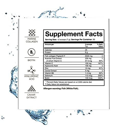 FEED YOUR HAIR, SKIN, & NAILS: As the most important element for the structure of your hair, skin, and nails, collagen is the key to their growth and strength. Fuel your beauty with the essential protein it needs for a beautifully natural and healthy glow with a premium European sourced Caviar Collagen based formula.