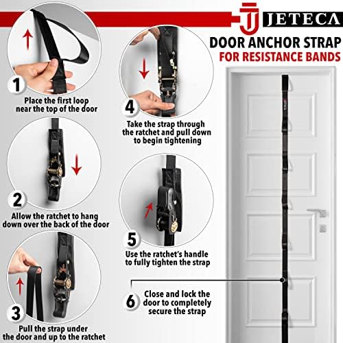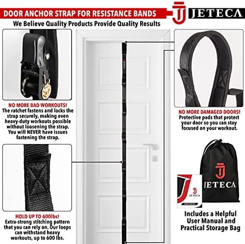 NO MORE FUMBLING AROUND with single-loop door anchors when switching between exercises. Our strap has MULTIPLE RESISTANCE BAND ANCHORS for the ULTIMATE WORKOUT. With Jeteca’s resistance band anchor, you can PERFORM VARIOUS EXERCISES, HELPING YOU HIT ALL MUSCLE GROUPS