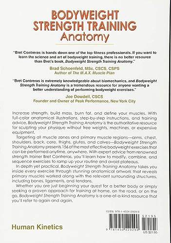 With full-color anatomical illustrations, step-by-step instructions, and training advice, Bodyweight Strength Training Anatomy by Bret Contreras is the authoritative resource for sculpting your physique without free weights, machines, or expensive equipment.
