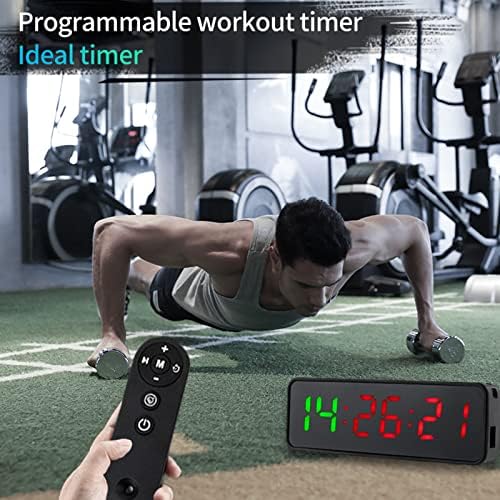 7″ Ultra-Clear Display with 1.3″ LED Digits: It displays in bright red and green, which are visible from anywhere in your garage or gym.6 Powerful Functions: Clock Display, Custom Timer for Interval Training, Count Up, Count Down, Stopwatch, Alarm Clock. Suitable for Tabata and HIIT workouts.2 Types of Control: remote & buttons control. All the functions can be controlled by the remote control. Compact and Portable Size: Put this portable portable gym timer inside your bag, go out for your fitness anytime.This workout timer is perfectly for Home gyms, Club Fitness Gyms, Health Clubs, Rec Centers, Schools, etc.