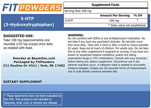 GUARANTEED PURITY AND QUALITY: This 5-HTP powder is 100% pure, non-GMO, vegan, and gluten-free. Packaged in an FDA registered facility. Third party lab tested.