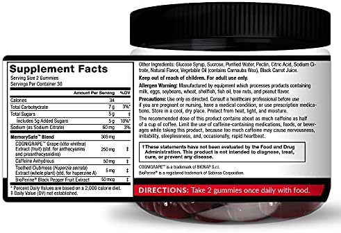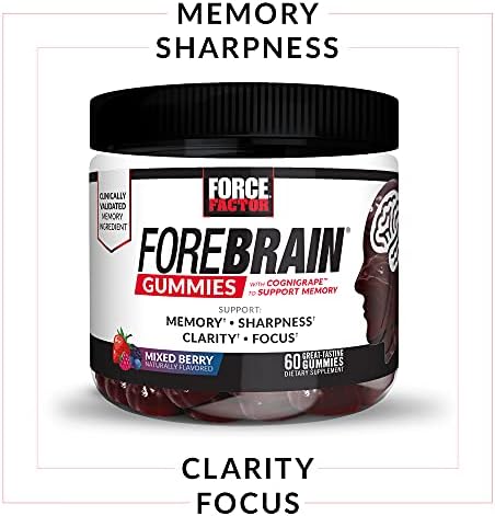 FORCE FACTOR Forebrain Gummies, 3-Pack, Nootropic Brain Support Supplement for Memory & Focus, Brain Vitamin with COGNIGRAPE & Huperzine A, Focus Gummies to Support Recall & Sharpness, 180 Gummies
