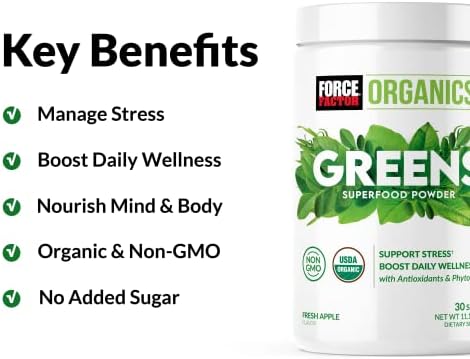 CERTIFIED ORGANIC, VEGAN, & NON-GMO: Not only is it organic, non-GMO, gluten-free, and vegan, Force Factor Organics Greens Superfood contains no artificial colors or artificial sweeteners, making it a high quality greens powder you can trust.