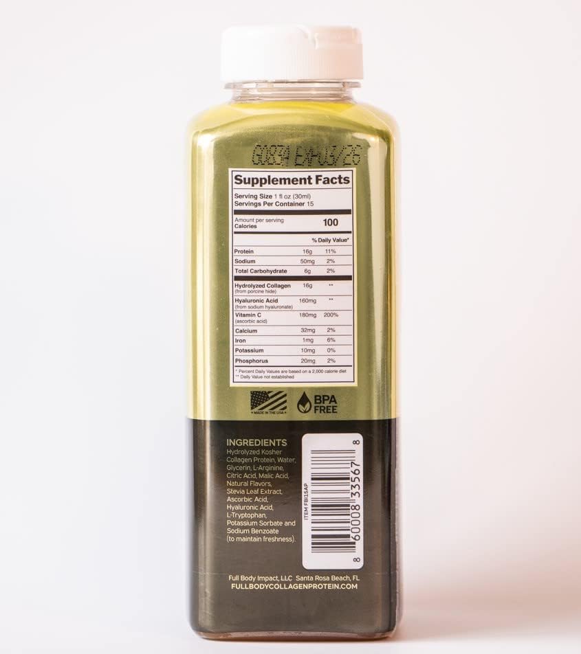 Collagen needs to be broken down into tiny particles before our bodies can absorb it. The smaller number of daltons, the easier we can digest the protein and get it to work! Collagen powders are upwards of 300,000 daltons. FULL BODY IMPACT liquid collagen is only 3,000 daltons. At a 99.5% absorption rate in just 15 minutes, our liquid collagen is more absorbable and, therefore, more effective and beneficial to our bodies!