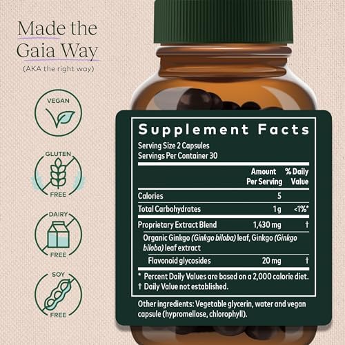 Gaia Herbs Ginkgo Leaf – Traditionally Used to Support Healthy Circulation and Brain Function – Organic, Herbal Supplement – 60 Vegan Liquid Phyto-Capsules (20-Day Supply)