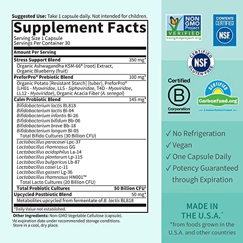 BACKED BY SCIENCE: Our Dr. Formulated Calm complete probiotic features 14 probiotic strains, including Clinically Studied Lpc-37 in its clinically studied amount for mood and relaxation plus a stress support blend with Organic Ashwagandha and Blueberry