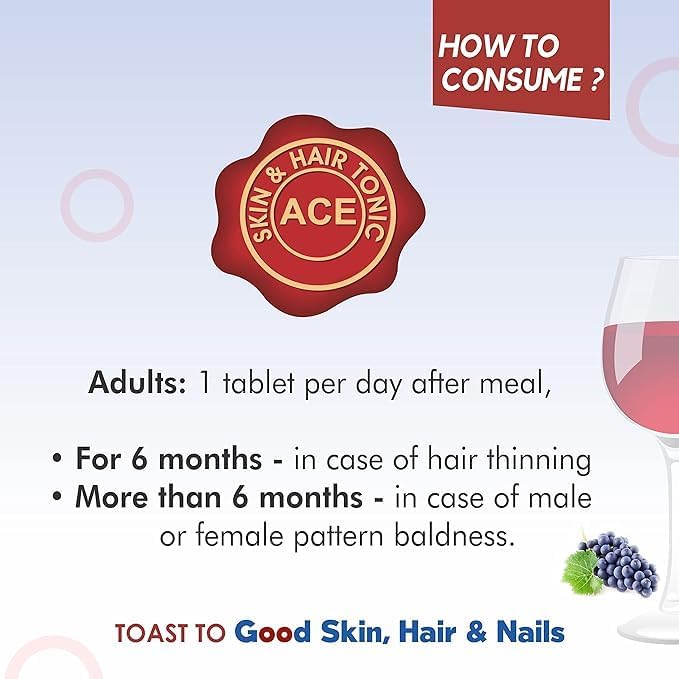 5. IMPROVES OVERALL HAIR, SKIN & NAIL TEXTURE – Each tablet contains the highest concentration of grape seed extract which provides a boost of proanthocyanidins. Proanthocyanidins are known to proliferate hair follicles, improve skin texture by managing UV induced hyperpigmentation, bring natural glow and improve the condition of nails by strengthening them.