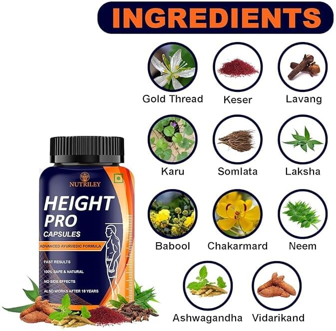 Height Capsules For Women & Men 60 capsules (Pack of 1) | For Helps to grow taller 100% Ayurvedic Speed Growth Height Increase Powder Supplement . Height Pro Capsule helps in gaining height rapidly. It helps activate body growth and improve bone strength. It also aids in digestion and supports metabolism. It helps shape and tone up the body and activate the body and mind. It helps in gaining height. It helps activate body growth and improve bone strength. Aids in digestion and supports the metabolism. Helps to shape and tone the body. It aids in activating the body and mind. Benefits : Rapid Height Gainer, Activates Body Growth, Improves Bone Strengthen, Improves Digestion and Metabolism, Shapes and Tones up Body. Activates Body and Mind. height pro capsule, capsule for height, rapid height gainer capsule, Bone Strength Capsule, Capsule for height, capsule for grow height, height increase capsule, height increase capsule, height increase capsule for men, height increase capsule for women, height increase capsule for boys, height increase capsule for girls, height increase capsule, height increase protein, Height growth capsule, Height growth capsule, Advance height growth capsule, Best height growth capsule, Best height growth capsule, Ayurvedic height growth capsule, Height growth capsule for Men, Height growth capsule for Women, Natural height growth capsule, Herbal body growth capsule, Height badhne ke liye capsule, Height lambi ke liye capsule, Height jaldi lambi hone ke liye capsule. Ingredients: Gold Thread