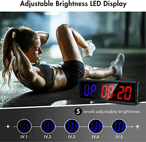 Gym Timer, Interval Timer with Ultra-Clear LED, Crossfit Clock Countdown/Up Stopwatch, Wall Workout Timer with Remote, Compatible with Power Bank for Home Gym Garage