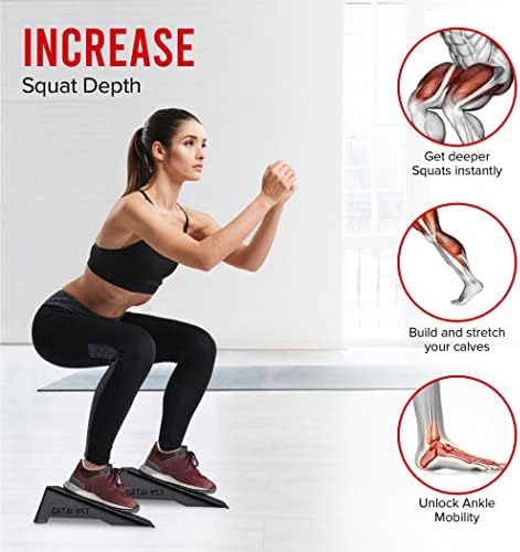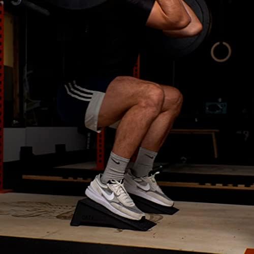 Anti-Slip Design – The surface of the wedge is coated in a course grip tape, which allows for use barefoot, with socks or shoes and rubber bumpers on the underside keep the squat ramps from sliding on the floor.