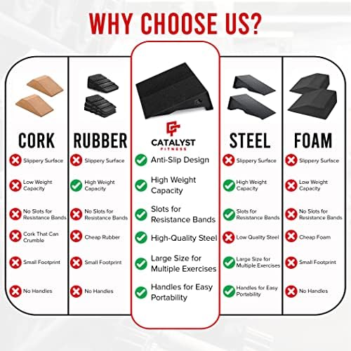 Heavy-Duty, Precision Engineered – Made entirely of durable steel, the Catalyst Pro Wedges can withstand over 1,200 pounds of force. Don’t settle for rubber or cork, which will wear under heavy use.