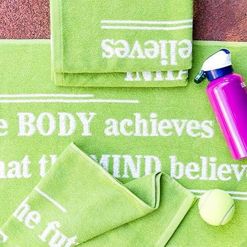 INNOVATIVE DESIGN TO STAY INSPIRED: Luzia mot-to workout towels are durable enough for any gym setting, but creative and stylish enough to take to the pool, golfing, and yoga studio with bright white inspirational quotes on them.