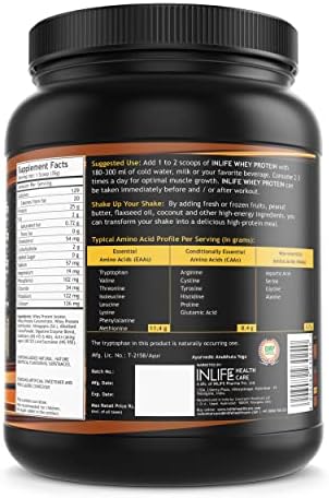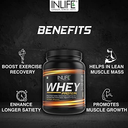 HIGH QUALITY MUSCLE FOOD: INLIFE Whey is fast absorbing and has a clean profile to help you reach your nutrition and fitness goals. If you are packing on weight or cutting calories, INLIFE Whey protein powder is the right choice that can get you there