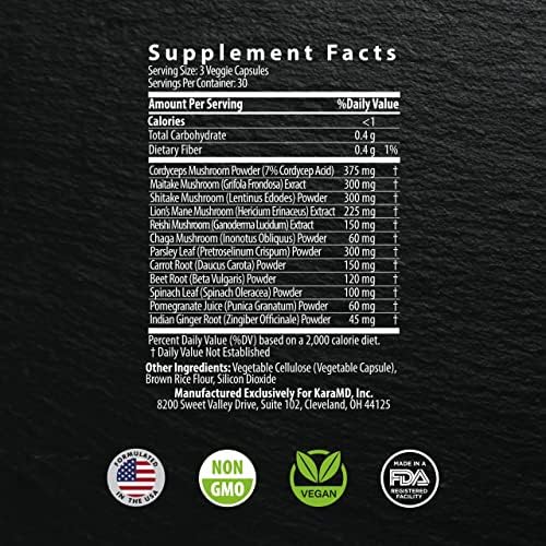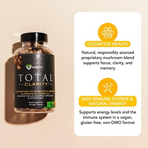 KaraMD Total Clarity – Supergreens & Mushroom Supplement Capsules – for Brain Focus, Immune Support & Energy – Vegetable Capsules – 30 Servings (90 Capsules) – 1 Pack