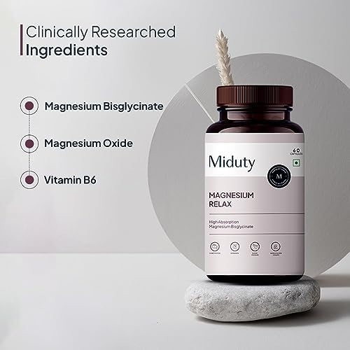 Miduty Magnesium Relax Supplement-Magnesium Bisglycinate-Magnesium Oxide-Vitamin B6-Relieve Constipation-Leg Cramps-Muscle Cramp-Migraine Relief-Good Sleep-60 Caps,Pack of 1