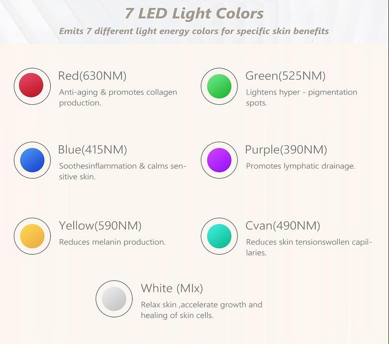 7 Colors in One led Fâcè light therapy Mâsk,each color has its effect, it can meet your various beauty needs, you can thoroughly treat the skin to recover the youthful appearance.