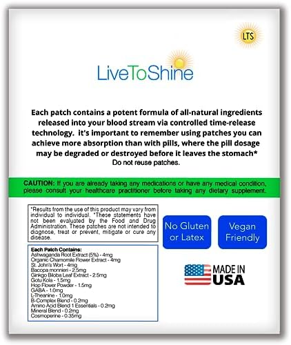 Live To Shine Relax Patches – Infused with Ashwagandha | GABA | St Johns Wort | Valerian | Kava – Natural Way to Unwind, Decompress and ReGroup – 30 Patches PER Pack – USA Made from